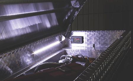 The battery led light works great for lighting a truck bed. Very easy to install and the double sided mounting tape is extremely strong. The batteries last a long time. Great product.